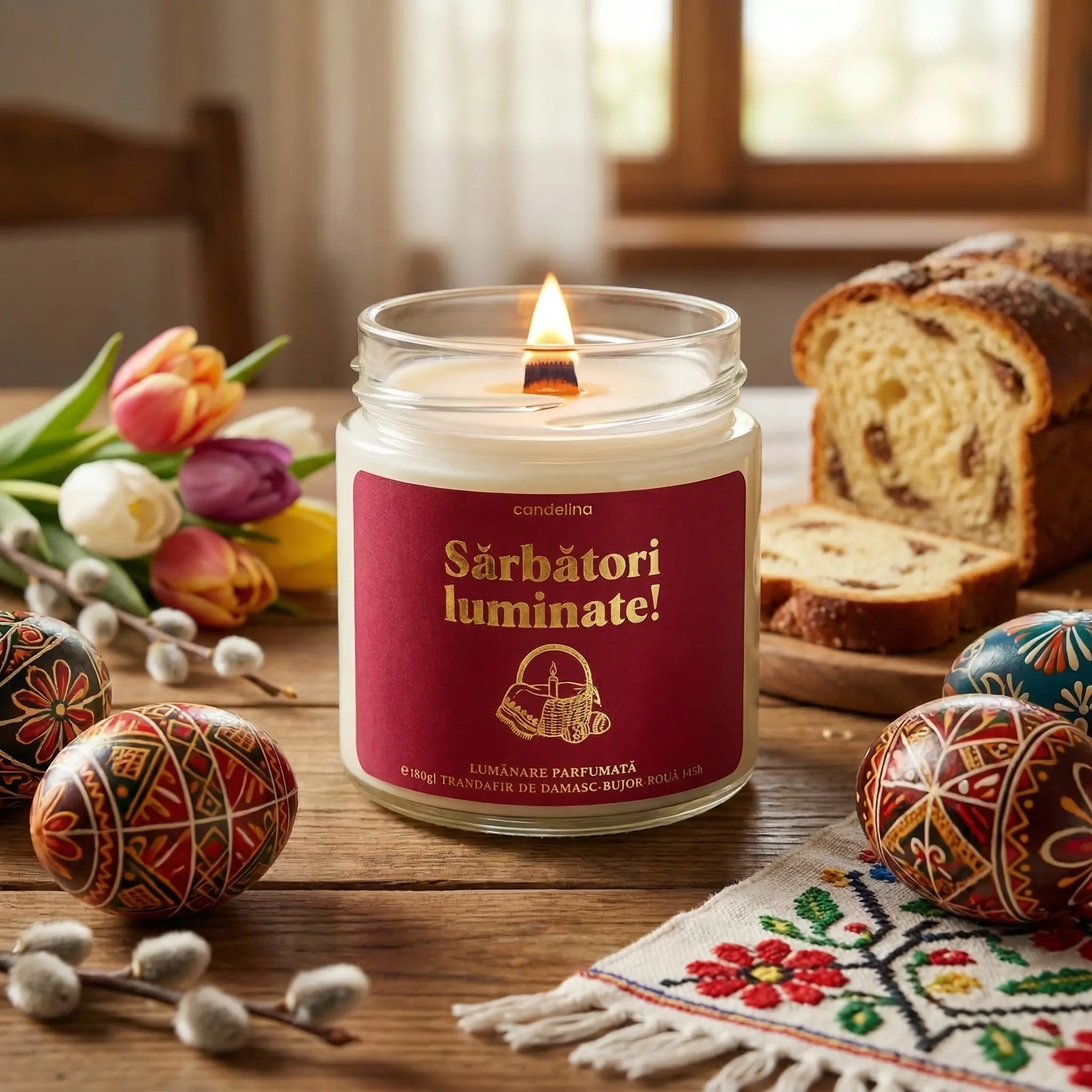 Tu poți duce tradiția mai departe. Aceeași lumânare pe masă, dar cu parfum de primăvară, cu fitil de lemn care trosnește și cu o aromă care rămâne în casă și după ce o stingi.