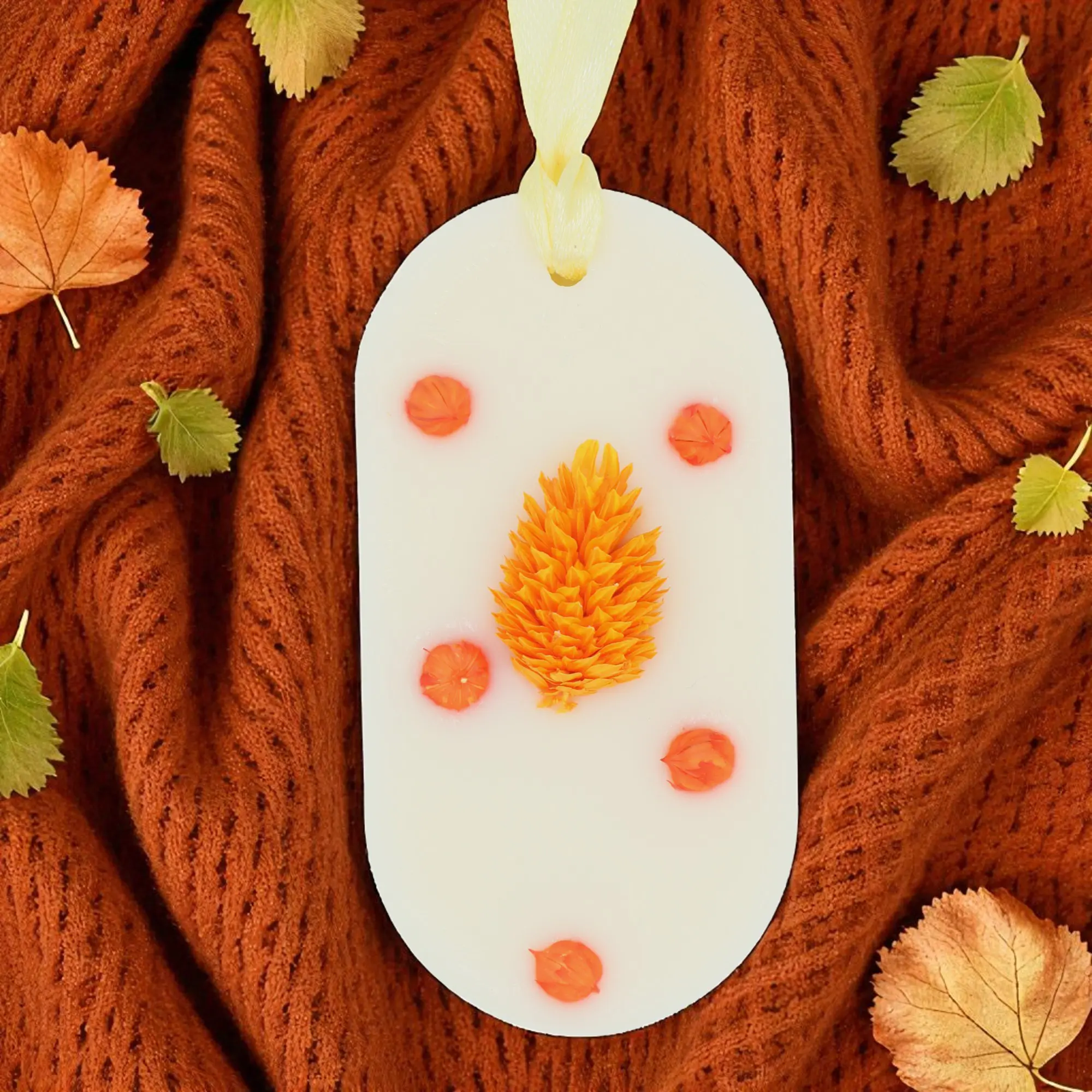 Fiecare odorizant este lucrat manual cu 100% ceară de soia, ulei parfumant și decorate cu flori și fructe uscate.